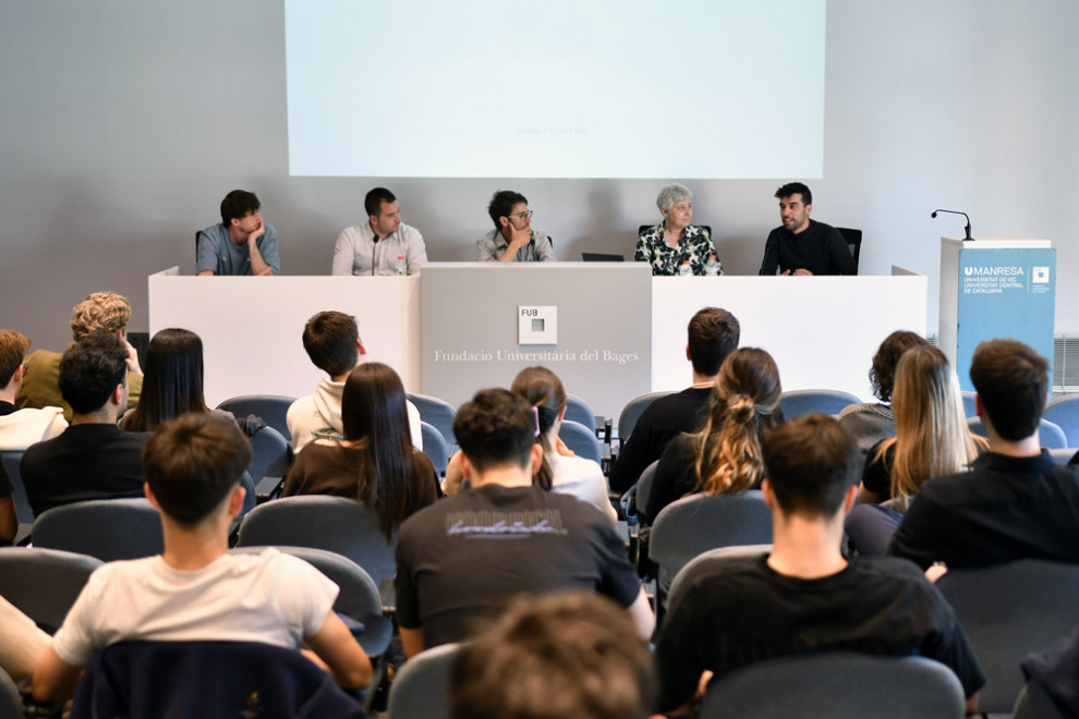 El grau en Administració i Direcció d’Empreses (ADE) de la Facultat de Ciències Socials de Manresa va organitzar el dimarts 24 de març la jornada “Emprendre en primera persona: experiències reals, trajectòries diverses”, una activitat adreçada a l’estudiantat de tercer curs amb l’objectiu d’enfortir la relació entre universitat i empresa i acostar l’emprenedoria real a l’aula. La sessió, que es va dur a terme a la sala d’actes de l’edifici FUB2, es va plantejar en format de taula rodona i va reunir quatre perfils emprenedors amb trajectòries molt diverses, fet que va permetre oferir una visió àmplia i complementària del procés d’emprendre en sectors i contextos diferents.