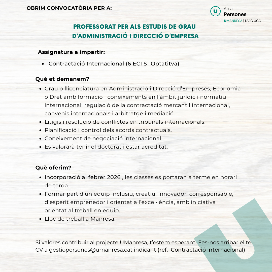 Para inscribirte, envíanos tu CV a gestiopersones@umanresa.cat indicando la referencia Contratación internacional.