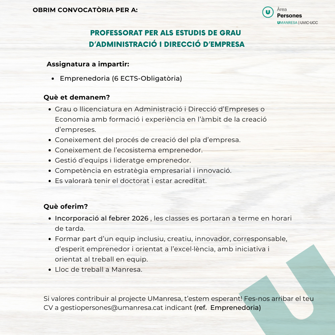 Para inscribirte, envíanos tu CV a gestiopersones@umanresa.cat indicando la referencia Emprendimiento.